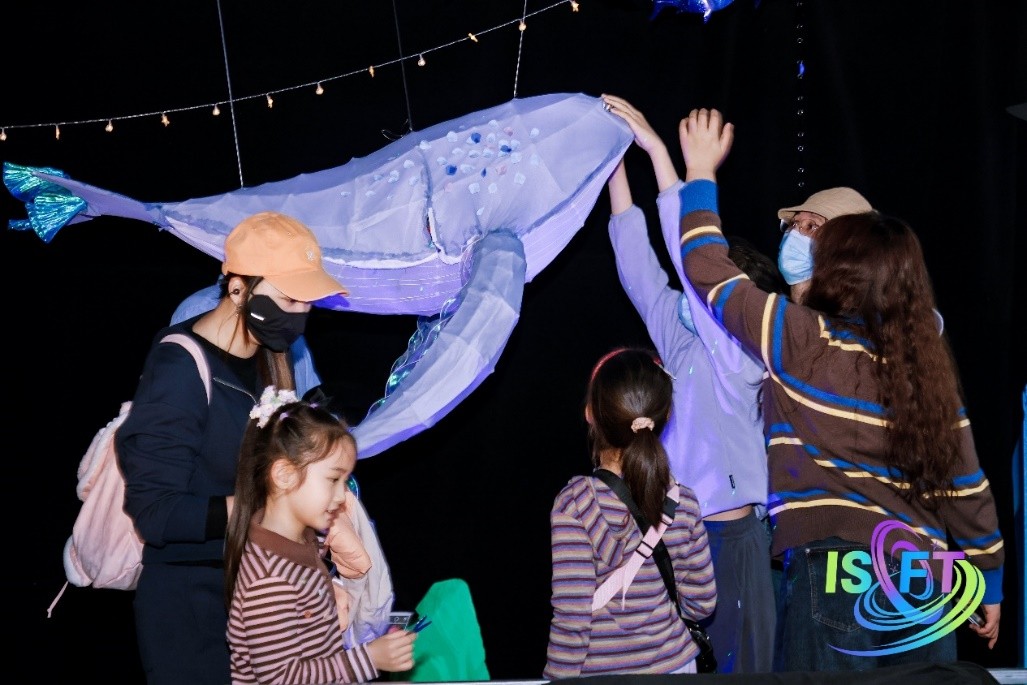 科幻大会期间,学校展位前始终人头攒动。“火星基地”和交互装置吸引观众驻足观看、倾听讲解、互动体验。观众通过手势、动作与装置互动,亲身感受人与空间的奇妙连接。大家常常一边排队等待一边讨论着作品背后的技术原理。