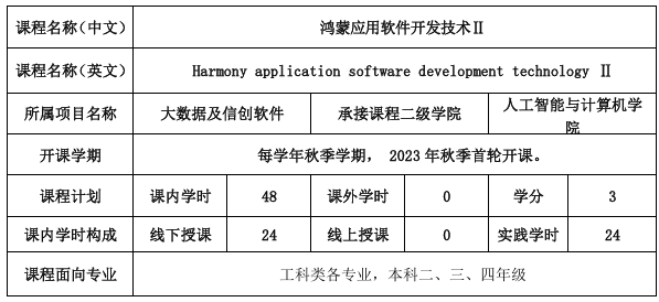 选课和遴选方式:教学信息网选课,提前预习ArkTS语言。