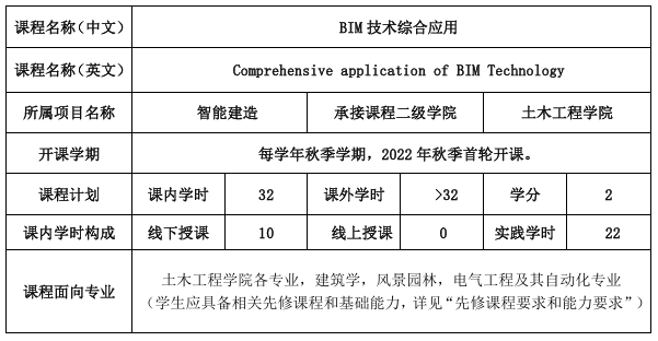 先修课程:(1)《BIM技术基础》,(2)《BIM工程应用》或《建筑信息模型与应用》,(3)《工程制图》或《建筑制图》。
